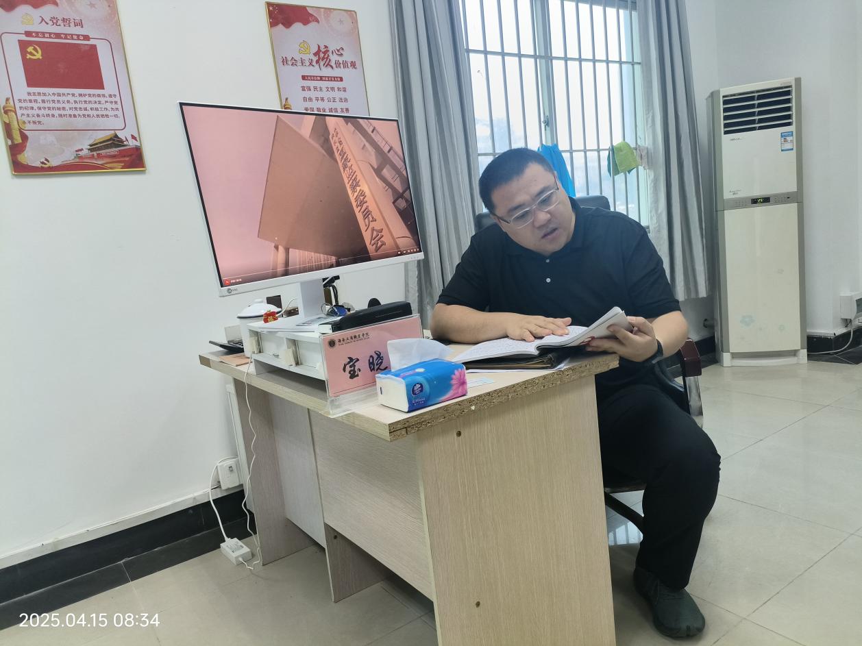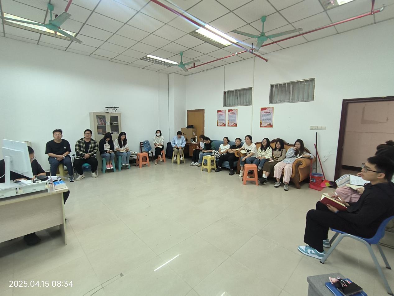 4月 15 日上午8:30,我院党支部在十三栋 108 室召开党支部深入贯彻中央八项规定精神学习教育暨辅导员职业能力提升培训会。学院党支部书记宝晓鹏主持会议及讲话,全体党员及辅导员参会。