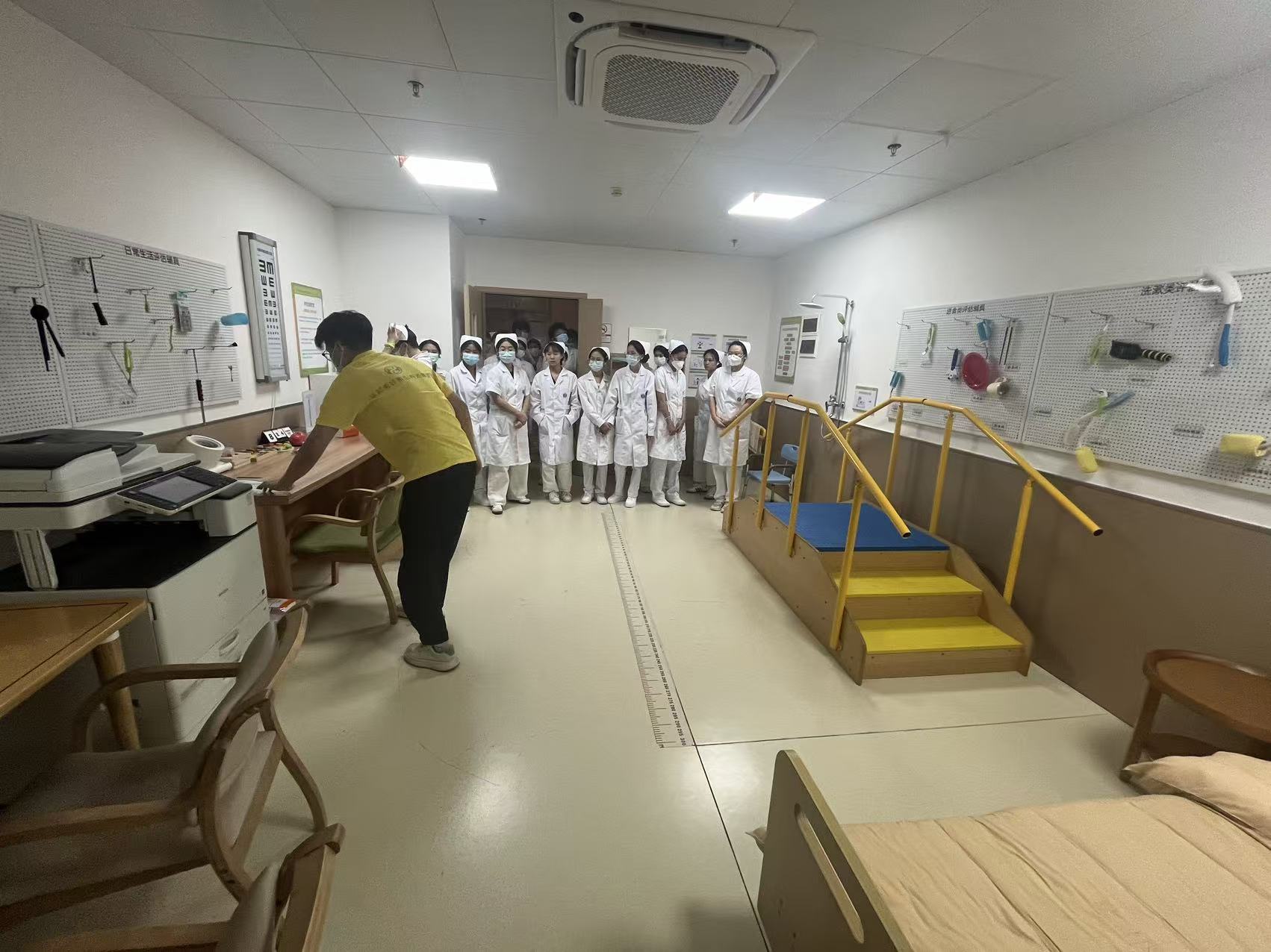 在李学长的热情引导下,同学们依次参观了养老服务中心的起居区、康复训练室、休闲娱乐区及医疗护理站等核心功能区。李学长结合自身工作实践,详细介绍了中心的日常运营管理模式、为老人服务流程、常见老年慢性病的照护要点以及现代化养老设施的应用。他不仅分享了从学生到职业人的心路历程,还就如何与长者有效沟通、提供个性化护理服务等实际问题,向护理专业学弟学妹们传授了宝贵经验。同学们认真聆听,积极提问,现场互动气氛热烈。