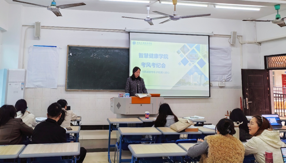 为进一步规范期末教学考核流程,严明考风考纪,确保考试工作的公平公正,切实守护育人初心,2025 年 12 月 15 日,智慧健康学院组织召开考风考纪专题会议。会议由学院院长刘璐主持,副院长赵伟娣主讲,全体专任教师参会,此次会议的核心要义与五育并举中的 “德育” 高度契合,将诚信教育、规则意识、责任担当等德育内核深度融入教学管理全过程。