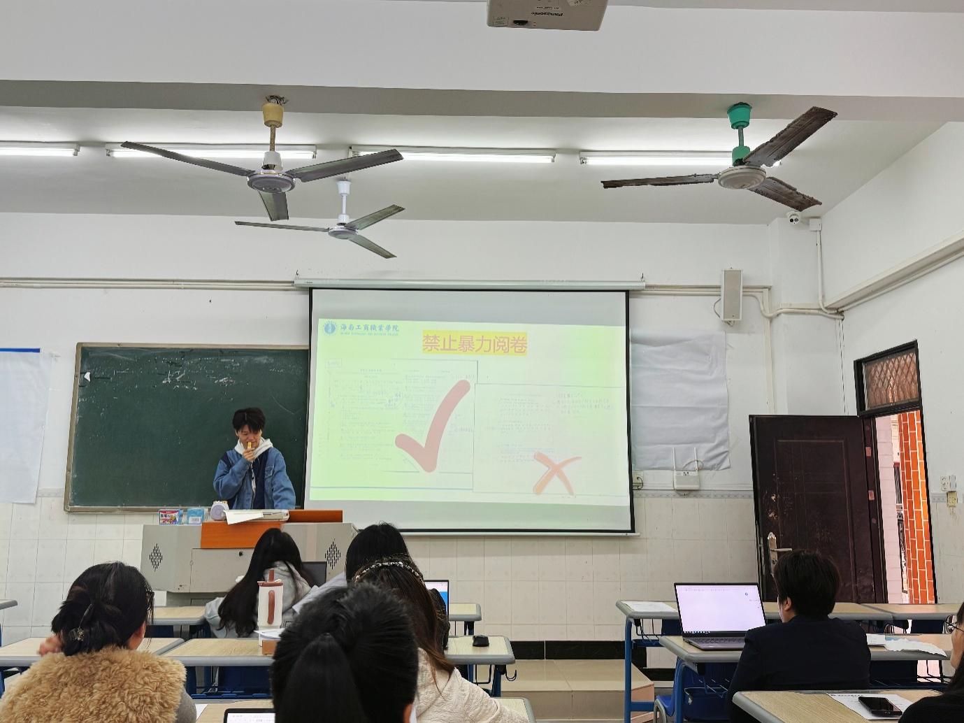 会议最后,刘璐院长再次重申考风考纪的重要意义。她表示,考风考纪是学院学风建设的重要基石,而学风的本质是学生道德素养与学习态度的集中体现,更是德育成效的直观反映。全体教职工要将考务规范内化于心、外化于行,以高标准、严要求完成期末考务各项工作,不仅要保障考试公平,更要以考风建设为抓手,将诚信教育、责任教育、规则教育贯穿人才培养始终。这既是对五育并举中德育优先原则的坚定践行,也是为学院培养 “品德高尚、专业扎实” 的高素质人才筑牢坚实防线,真正实现 “以考风正学风,以德育塑人格” 的育人目标。
