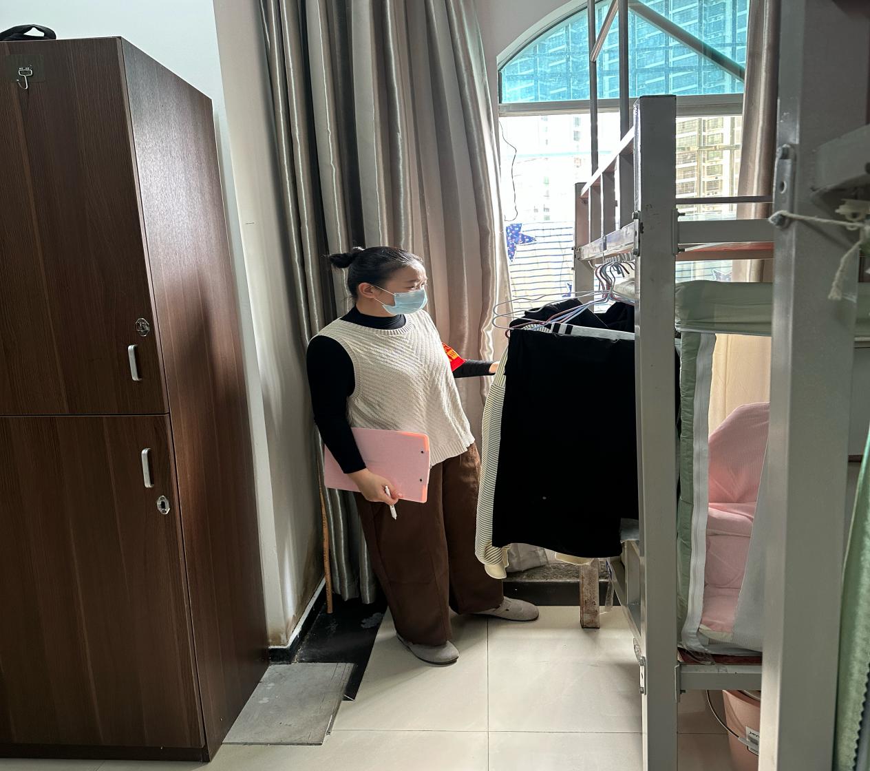 在宿舍卫生检查中,引导学生养成勤劳整洁的生活习惯,锤炼责任担当与自律品质。队伍全面排查宿舍安全隐患,精准摸清学生返校底数,认真倾听学生诉求,建立工作台账并逐项跟进落实,切实为学生成长成才保驾护航。