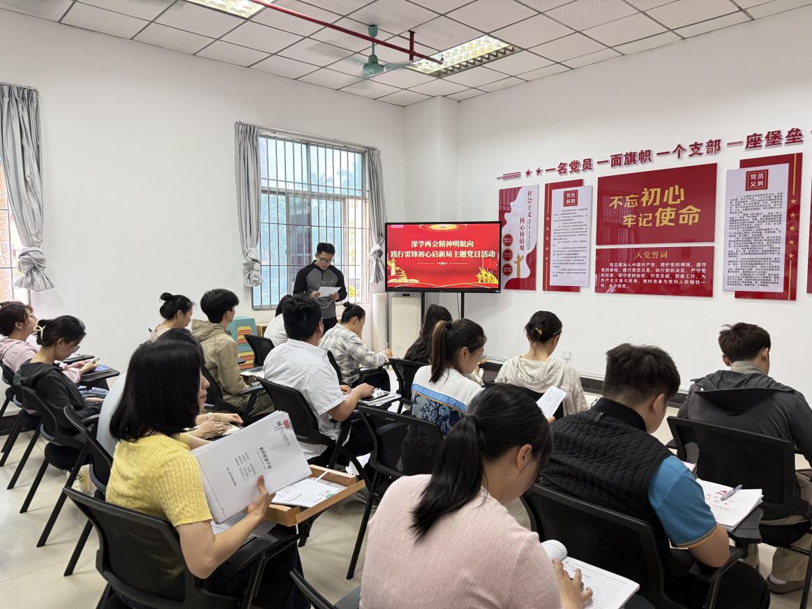 在深学细悟环节,陈功宏同志带领全体党员深入学习全国两会精神,细致解读核心要义与实践要求;王静楠同志领学 “让雷锋精神与时代同行” 相关内容,引导党员深刻领会新时代雷锋精神的丰富内涵。李海妹、杜祚同志依次交流学习心得,立足教育教学、学生管理等本职工作谈体会、谋发展,推动理论学习与岗位实践深度融合。为持续强化纪律作风建设,会议还由王静楠同志领学全面从严治党专题内容,带领大家深入领会新时代党的建设总要求,引导党员干部不断增强纪律意识、规矩意识,始终坚持严的基调、严的措施、严的氛围,以全面从严治党的实际成效,为学院教育教学高质量发展保驾护航。