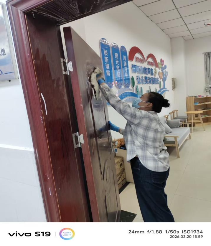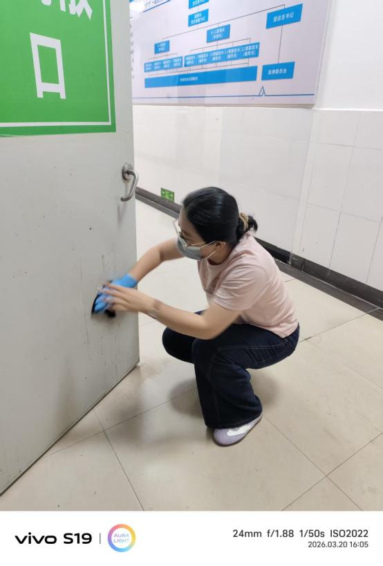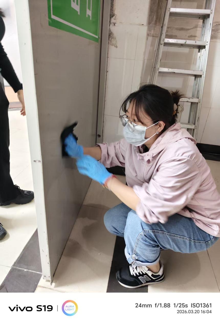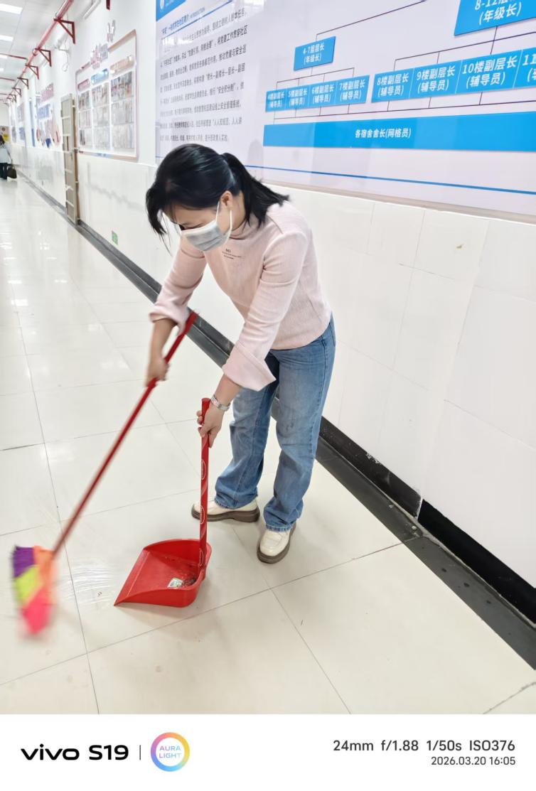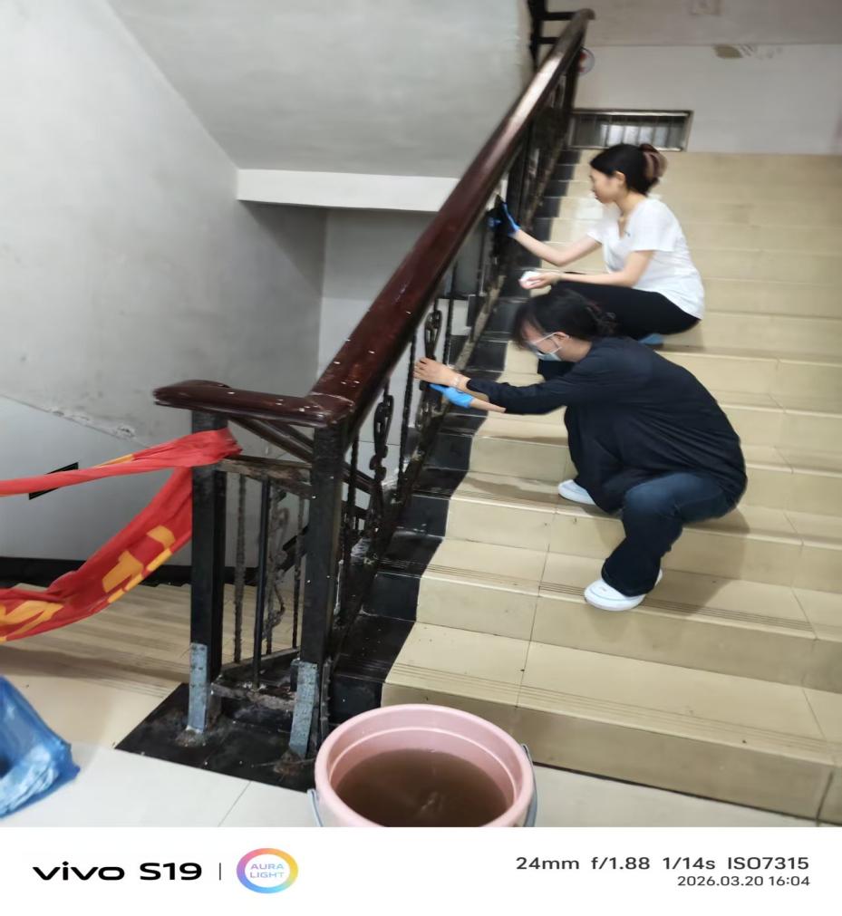 理论学习终要落脚实践,活动最后,全体党员教师、辅导员及志愿者走出活动室,积极参与爱国卫生运动,对学生宿舍十三栋一楼公共区域开展全面清扫。大家以实际行动践行雷锋精神和为民服务的根本宗旨,将理论学习成果转化为志愿服务的具体实践,让党旗在基层一线高高飘扬。