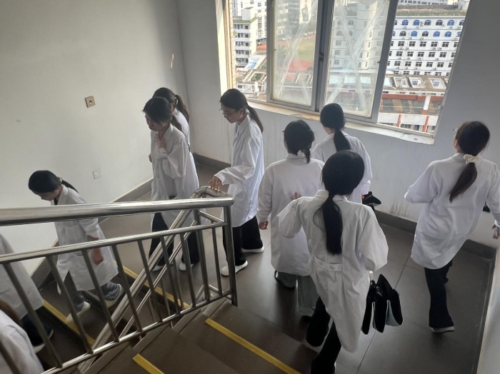 为进一步规范实训室安全管理,提升师生应对突发安全事故的应急处置与自救互救能力,筑牢校园安全防线,2026 年4月13日上午,智慧健康学院联合学校保卫处消防科在实训楼14楼开展实训室安全应急演练。学院党支部书记宝晓鹏、保卫处消防科科长唐慧杰、实训中心负责人卓花、实训管理员陈波、辅导员及学生代表共60名师生参与本次演练。