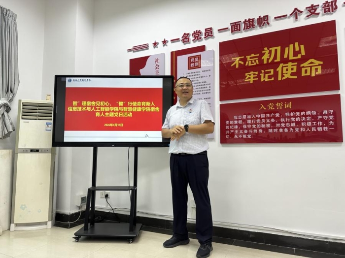 为进一步加强学生宿舍楼管理,强化宿舍育人功能,2026年4月13日上午,信息技术与人工智能学院与智慧健康学院联合开展“智”理宿舍见初心,“健”行使命育新人—宿舍育人主题党日活动,双方围绕宿舍管理、育人工作深入交流、共促提升。